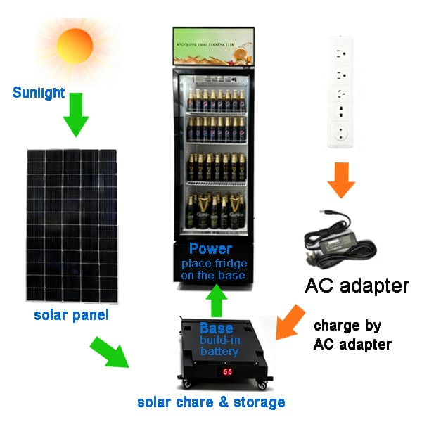 The AUSOLARLUX Solar-Powered Refrigerator offers a generous 268L capacity, designed for clear product visibility to help boost sales volume. It operates on both solar energy and AC power, providing an eco-friendly and cost-effective cooling solution. This unit ensures stable temperature control to keep contents in optimal condition and features a sleek, modern design that fits any space.